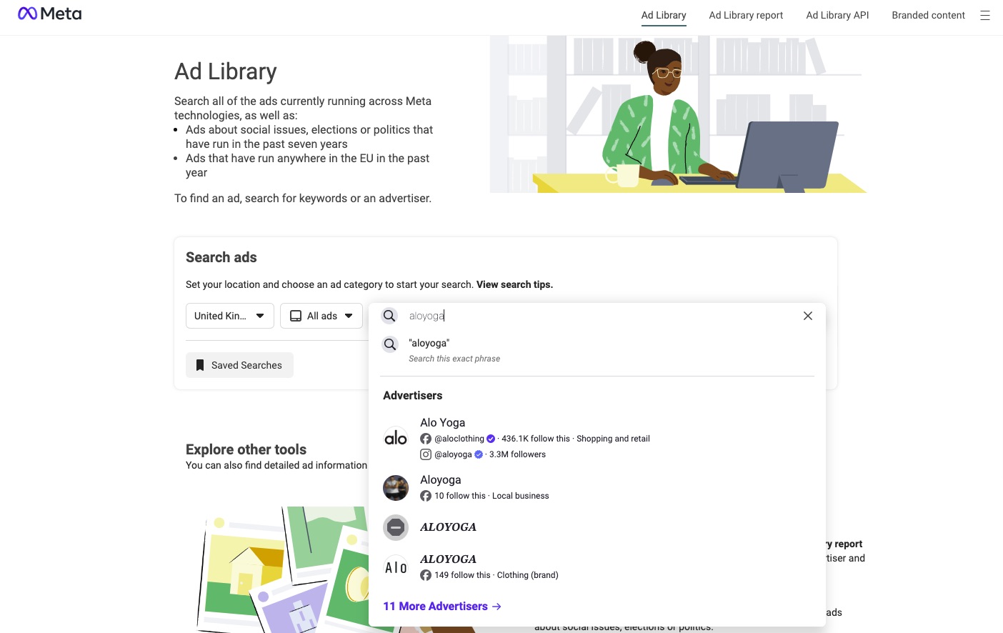 The Facebook Ad Library works as your first-choice research tool. You can enter a brand name to access all current advertising campaigns.