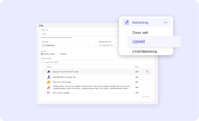 Tăng doanh số bán hàng với các gợi ý bán thêm thông minh, ưu đãi có thể tùy chỉnh và tích hợp liền mạch trong suốt hành trình mua sắm.