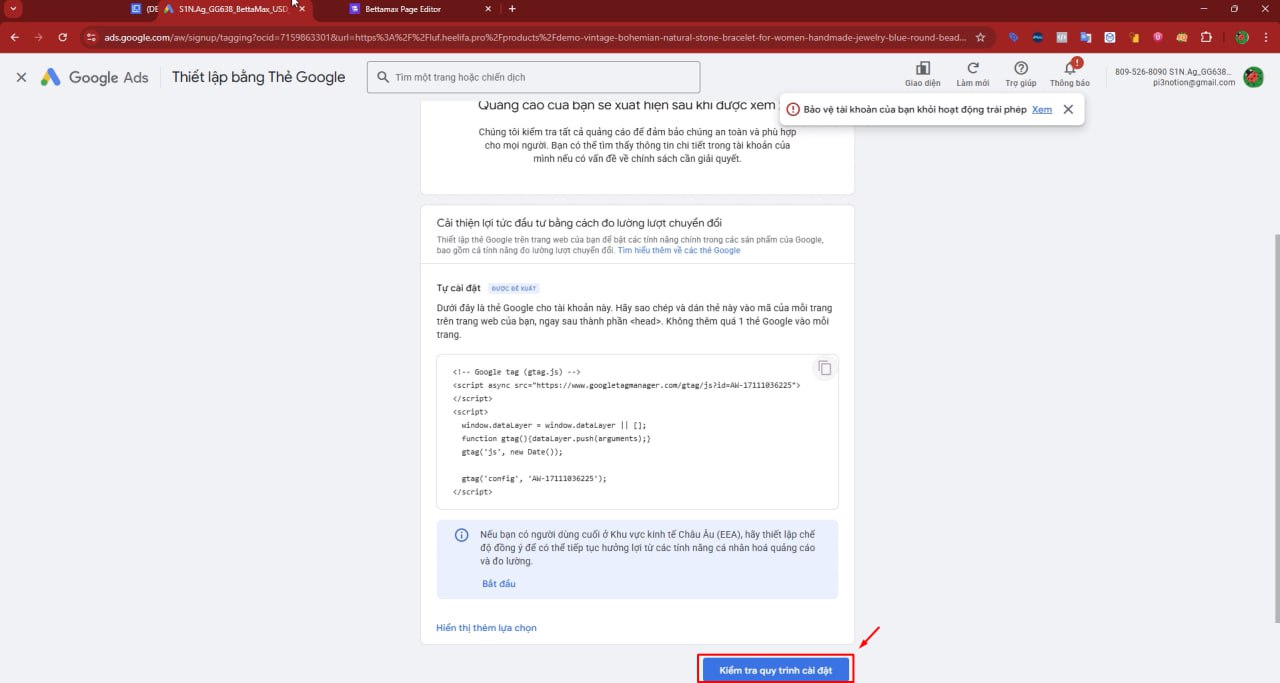 1. Trong Google Ads, tiến hành “Kiểm tra quy trình cài đặt”